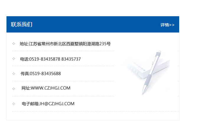 地址:常州市新北區友邦商務大廈1幢16、17層  電話:0519-85101652  傳真:0519-85112595  郵編:213022  網址:www.cz-jiayue_cn.024usb.com  郵箱:xiajifengaa@163.com